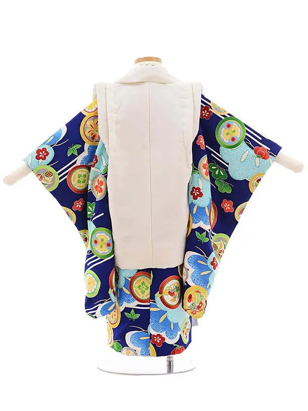 七五三レンタル(3歳男児被布)2258 式部浪漫 白×ブルー地 丸紋