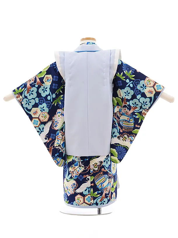 七五三レンタル(3歳男児被布)2272 乙葉 水色×紺 かぶと 鶴