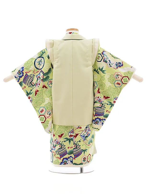 七五三レンタル(3歳男児被布)2273 乙葉 グリーン×グリーン かぶと 鶴