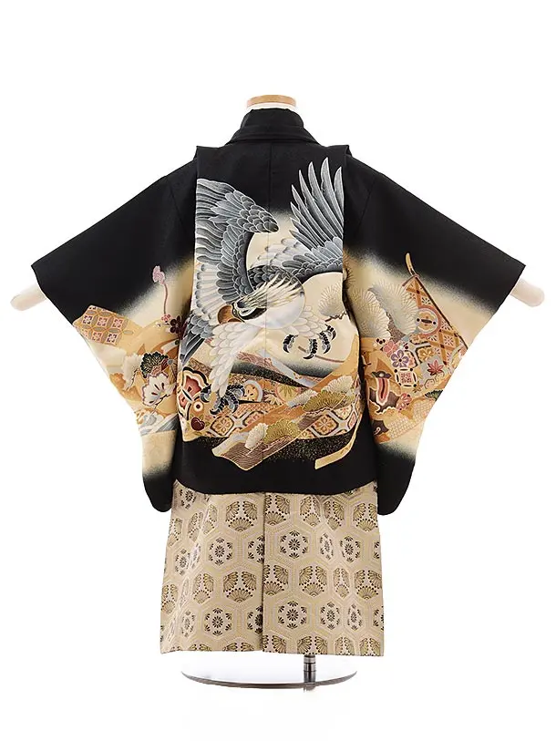 七五三レンタル(3歳男児袴)2275 黒地 のしに鷹×ベージュ袴