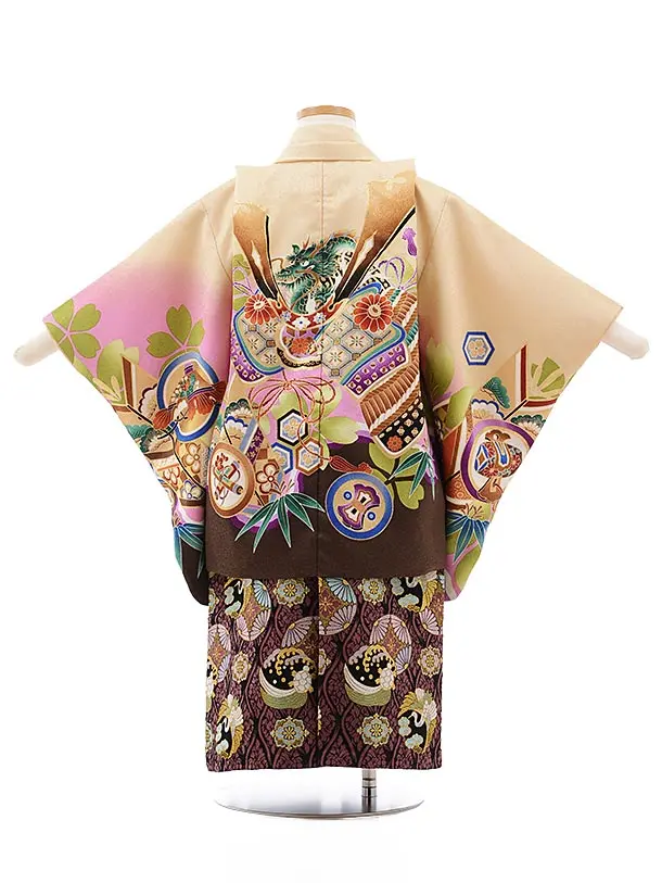 かんたん七五三(3.4歳男児袴)2276ベージュ地丸紋かぶと