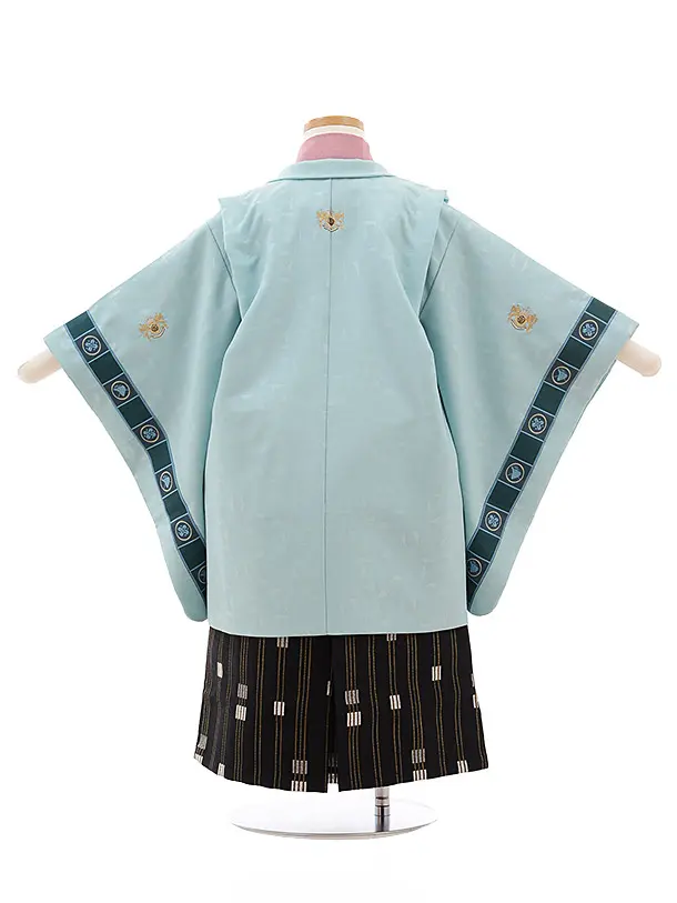 かんたん七五三レンタル(3.4歳男児袴)2281ミントグリーンししゅう紋×黒