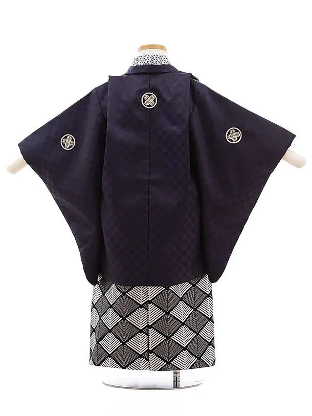 七五三(3.4歳男袴)2300 花わらべパープル市松×黒シルバー袴