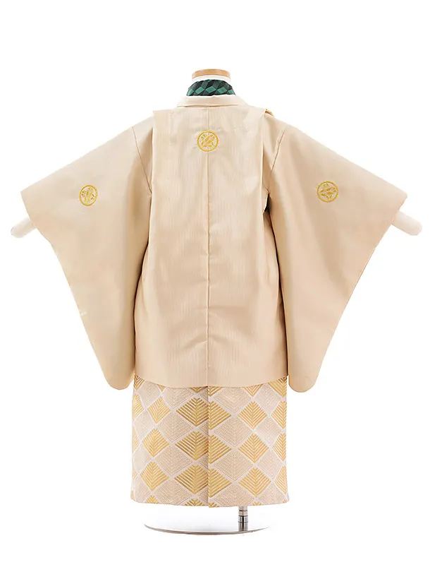 かんたん七五三(3.4歳男袴)2301 花わらべベージュ×白ゴールド袴