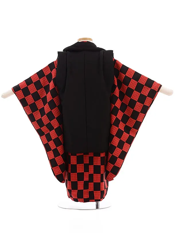 七五三レンタル(3歳男児被布) 正絹 2313 黒×黒赤市松