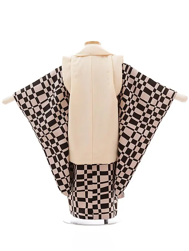 七五三レンタル(3歳男児被布) 正絹 2320 クリーム色×ブラウン格子