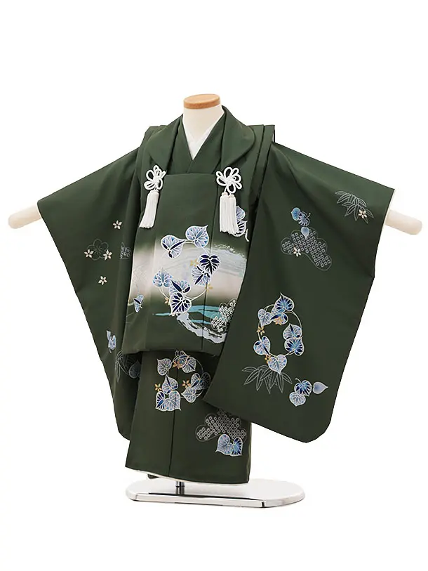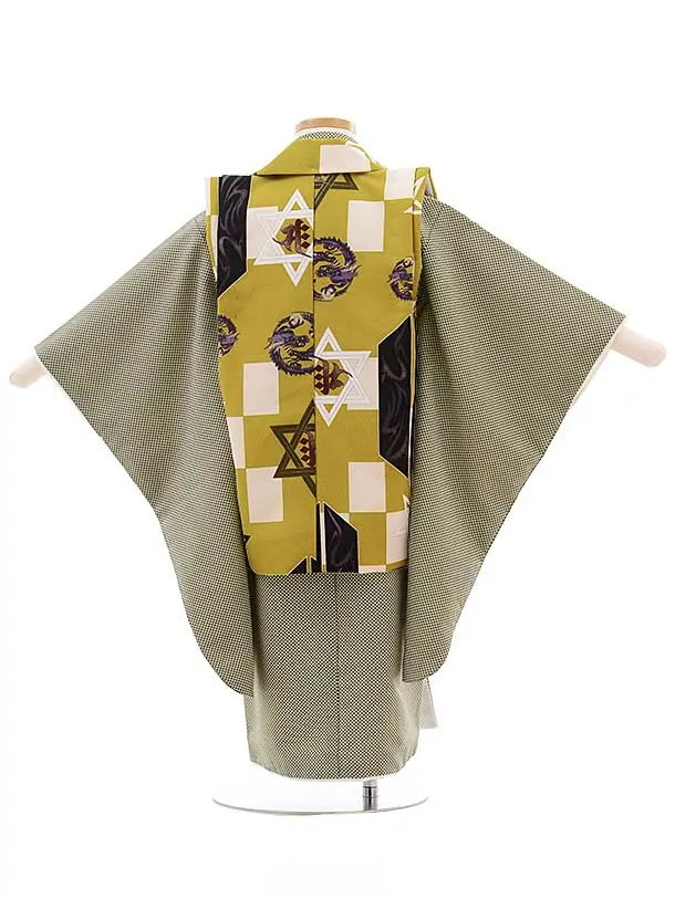 七五三レンタル(3歳男児被布) 2338 抹茶色 龍×グリーンベージュ
