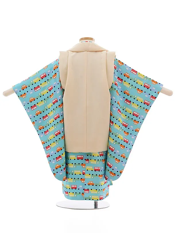 七五三レンタル(3歳男児被布)2352 正絹 クリーム色×水色 くるま
