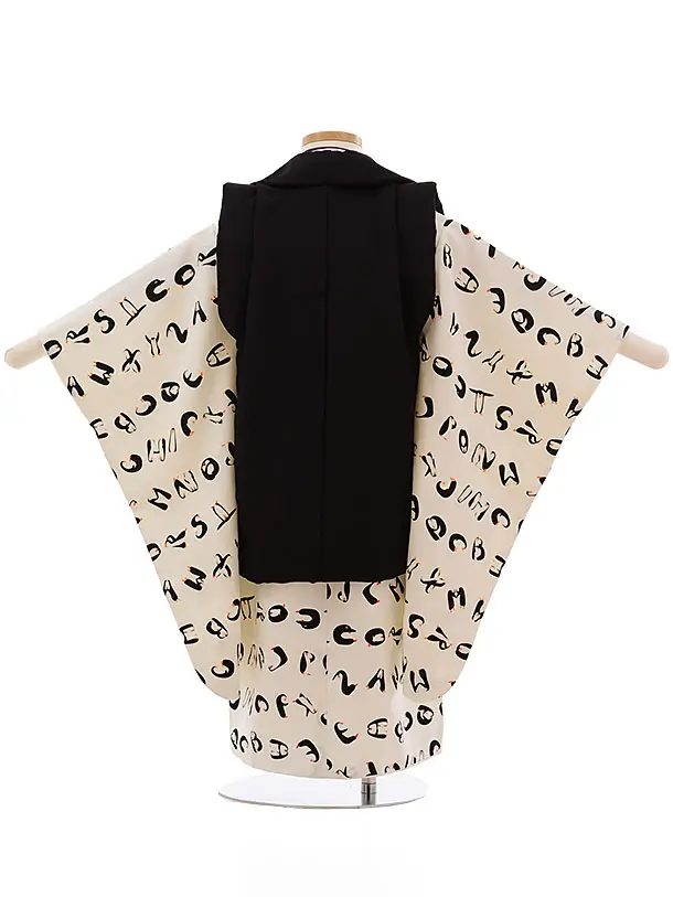七五三(3歳男被布)2354正絹 黒×オフホワイトペンギンアルファベット
