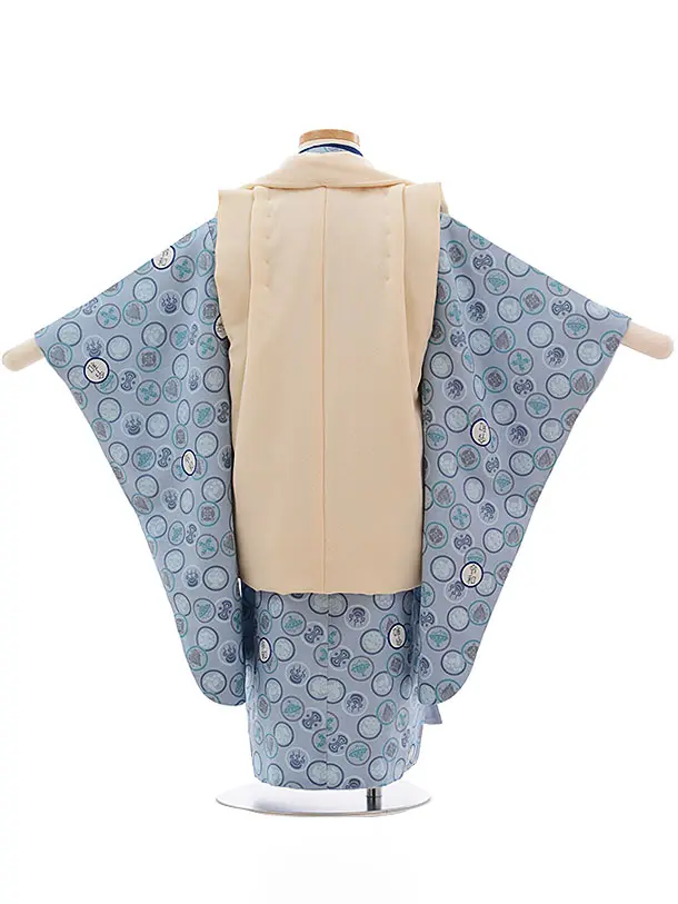 七五三(3歳男児被布)2355 正絹 クリーム色×ブルーグレー地 令和
