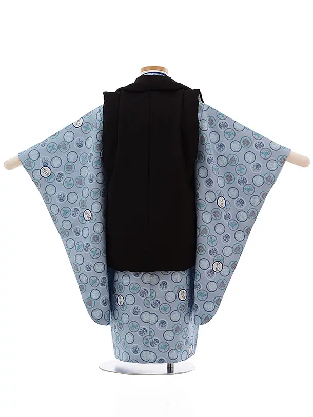 七五三レンタル(3歳男児被布)2356 正絹 黒×ブルーグレー地 令和