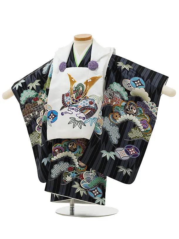 七五三レンタル(2.3歳男児被布)2357 クリームラメ×黒白ドット