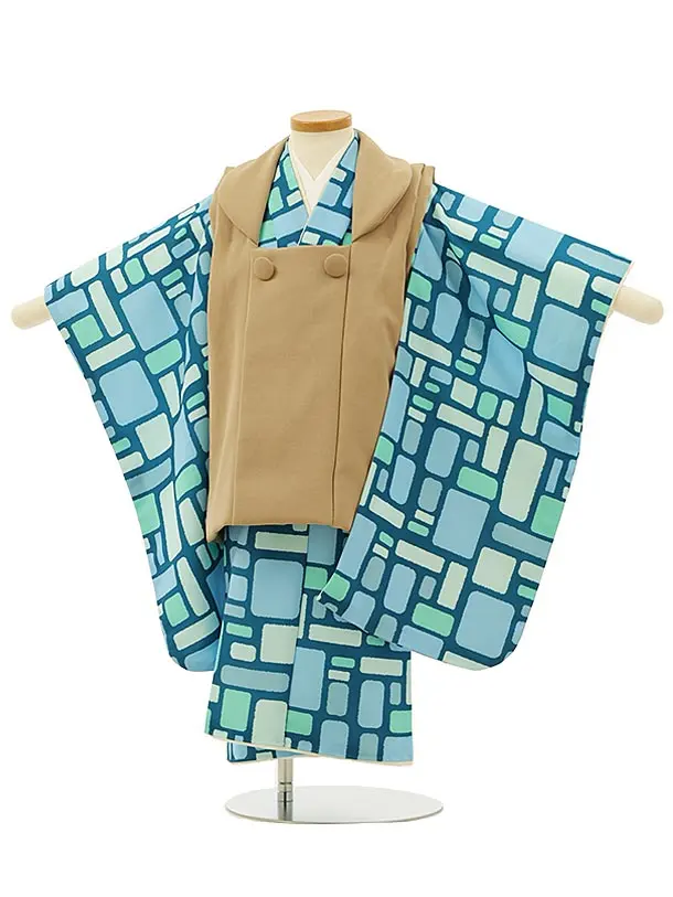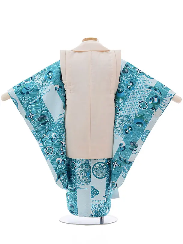 七五三レンタル(3歳男児被布)2360 ラメアイボリー×ターコイズ地 宝船
