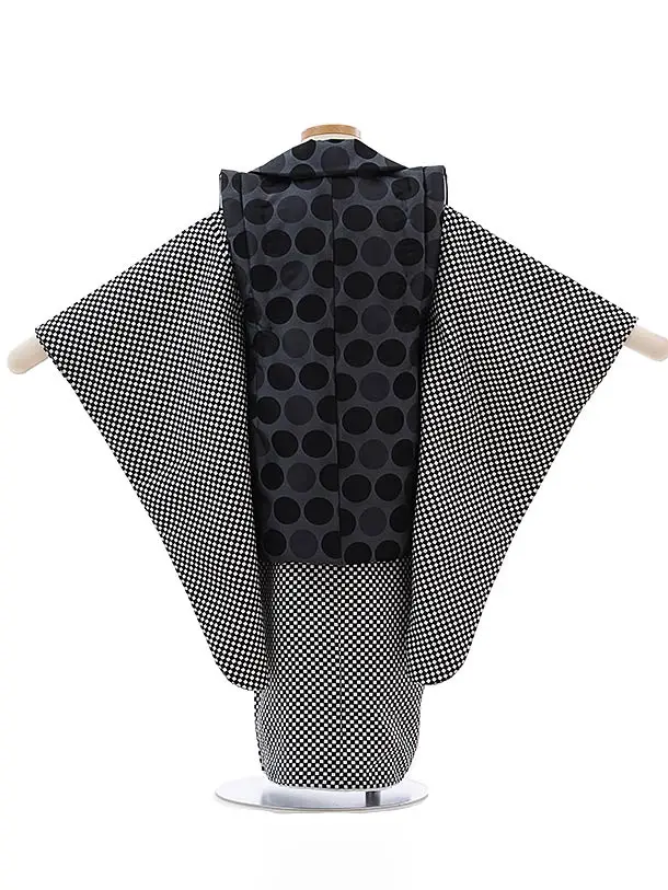 七五三レンタル(3歳男児被布)2365 ラメグレー地 ドット×黒白市松