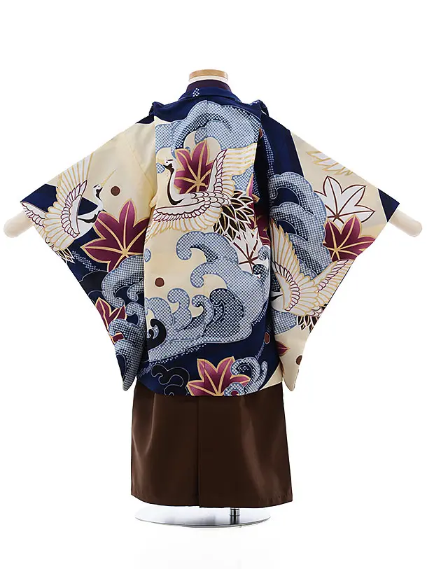かんたん七五三(3歳男児袴)2384 クリーム地 波に鶴