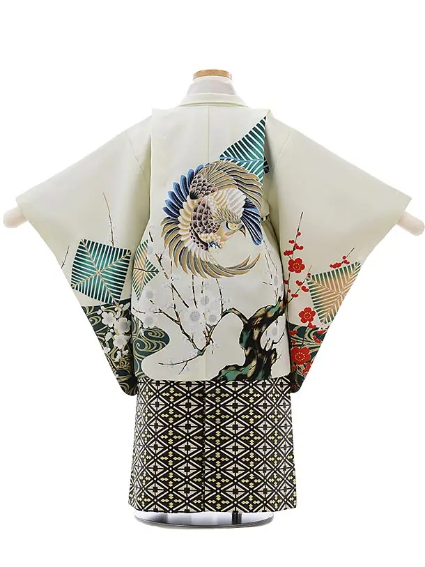 かんたん七五三(3歳男児袴)2386 うすグリーン地 鷹に梅