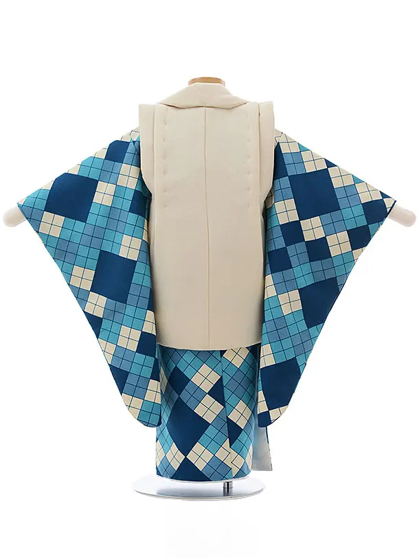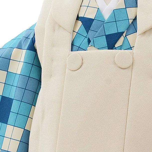 七五三レンタル(3歳男児被布)2388 ベージュ×ブルーアーガイル
