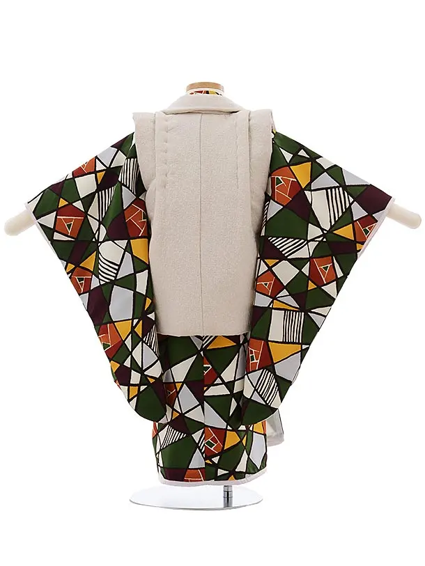 七五三(3歳男児被布)2390 ラフィネココ グレージュ x 白緑モダン柄