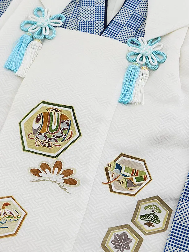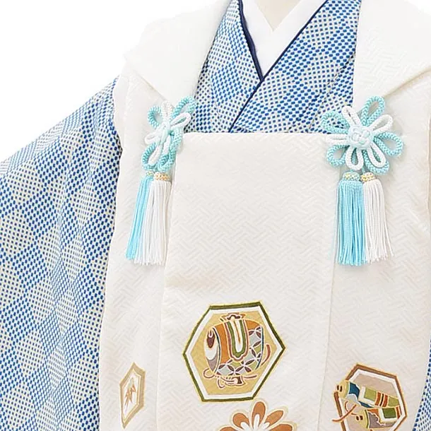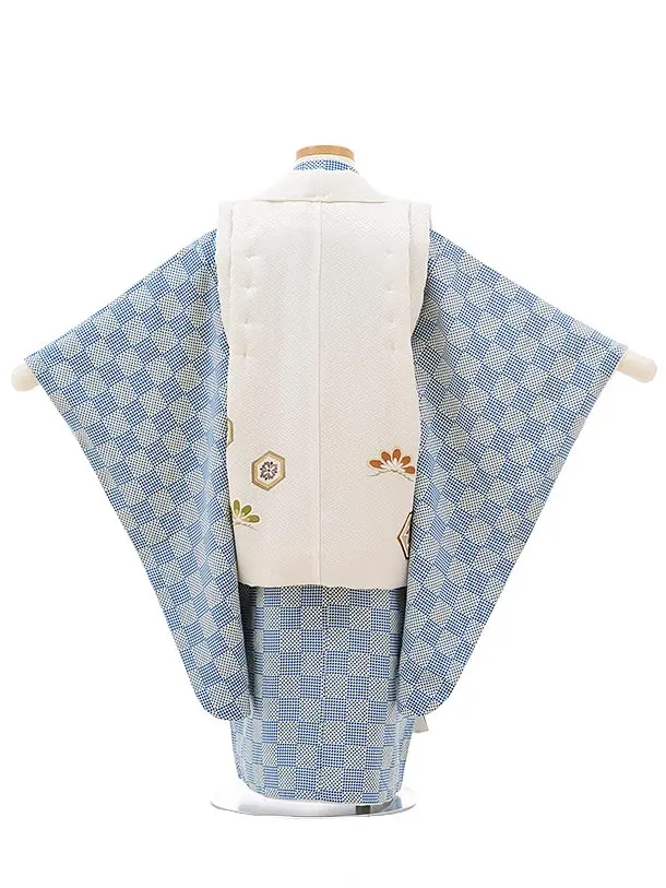 七五三レンタル(3歳男児被布)正絹2395白亀甲小槌×ブルー地変わり市松