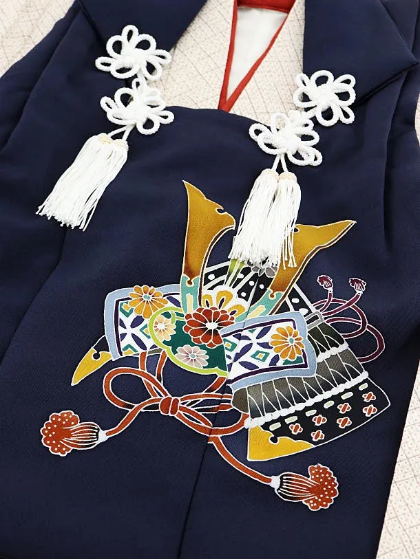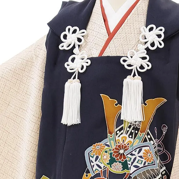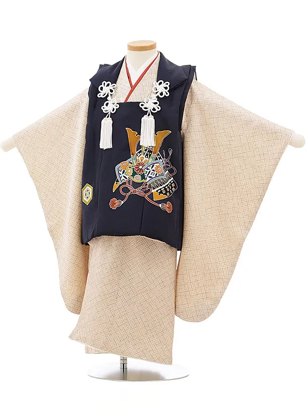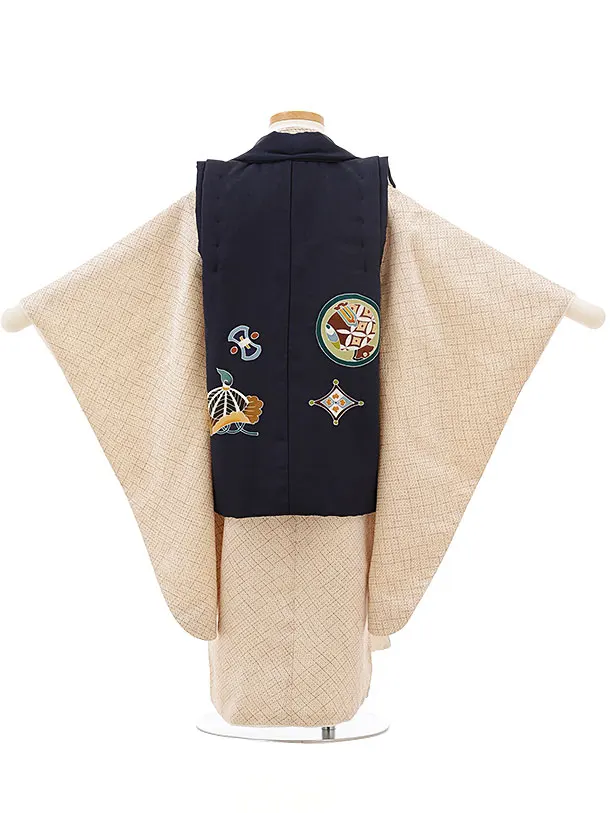 七五三レンタル(3歳男児被布)正絹2410紺丸紋×茶色疋田柄
