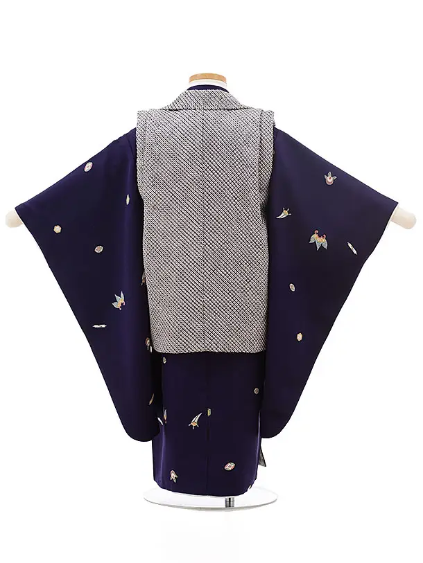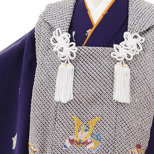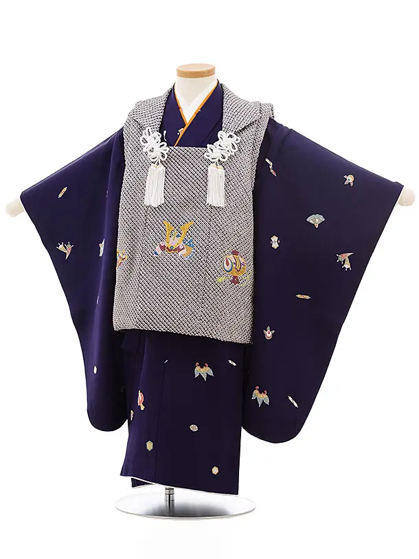 七五三レンタル(3歳男児被布)正絹2414疋田刺繍兜×パープル宝尽くし