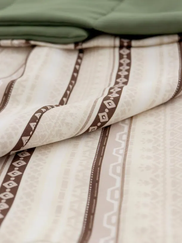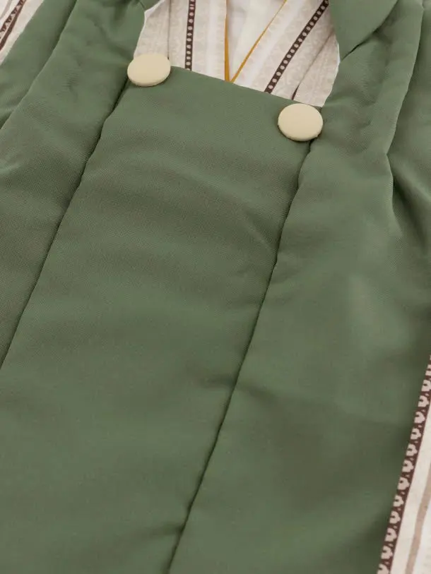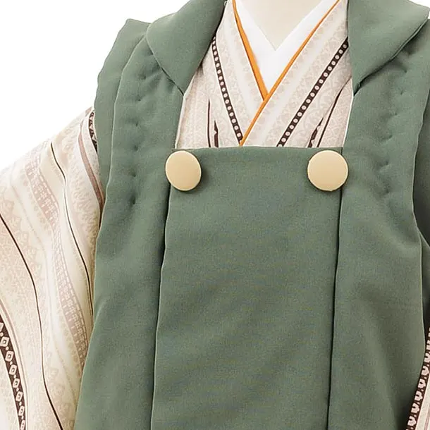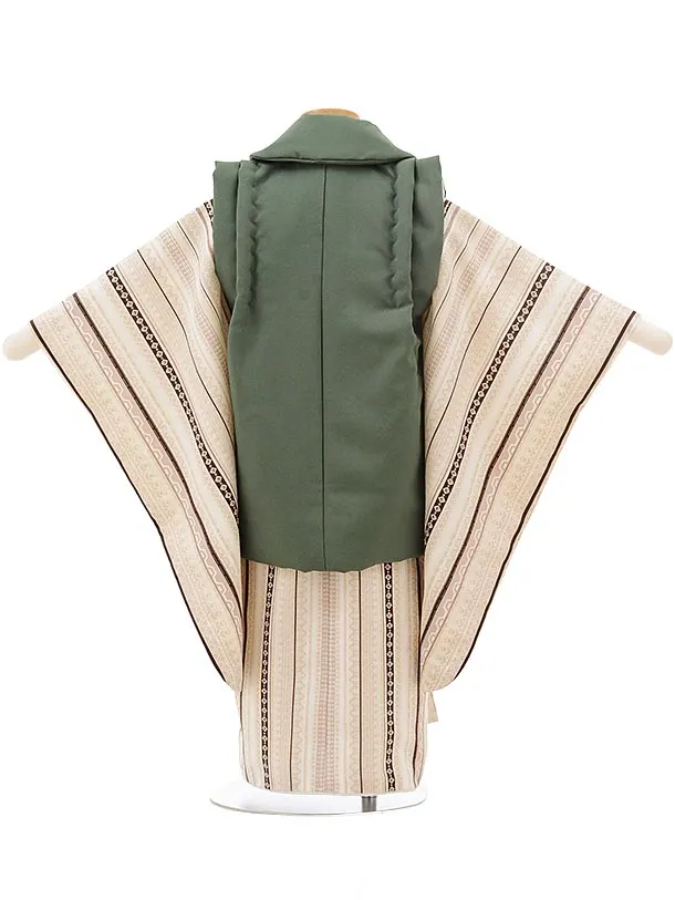 七五三レンタル(3歳男児被布)2420グリーン×ベージュ変わりストライプ