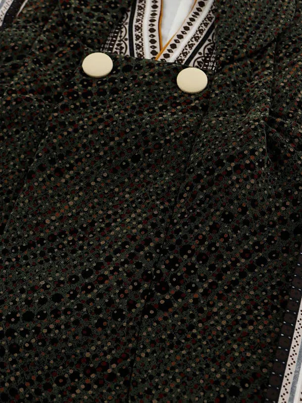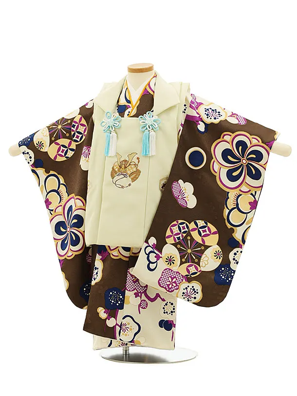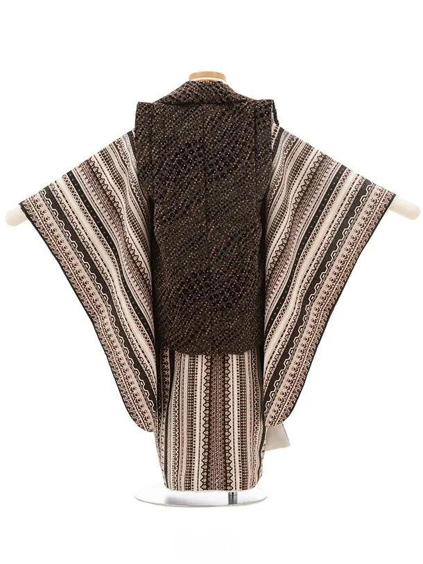 七五三レンタル(3歳男児被布)2424緑茶ドット×ブラウン変わりストライプ