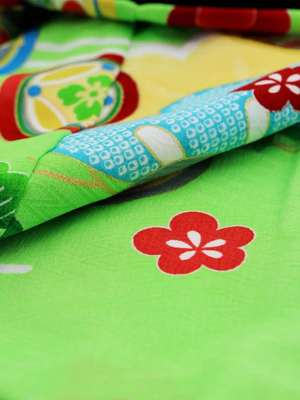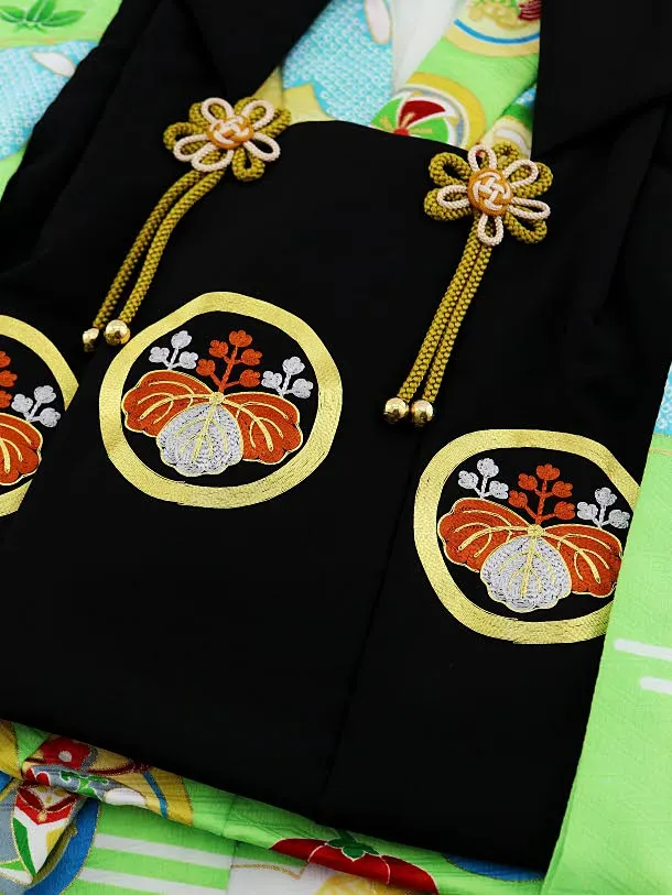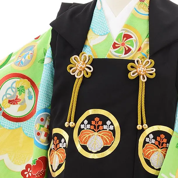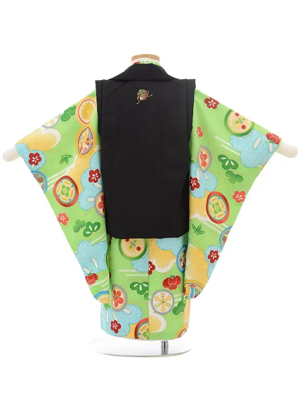 七五三レンタル(2歳男児被布)2427黒刺繍丸紋×黄緑丸紋