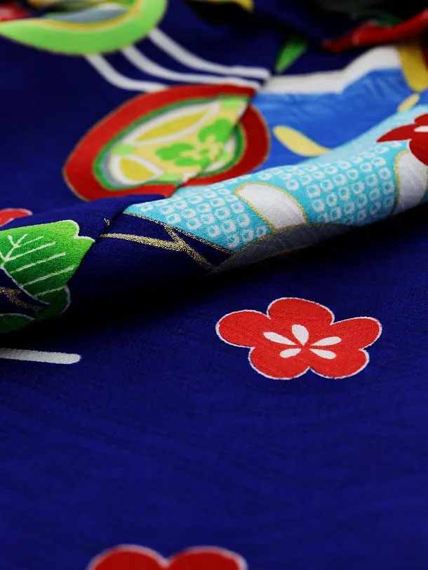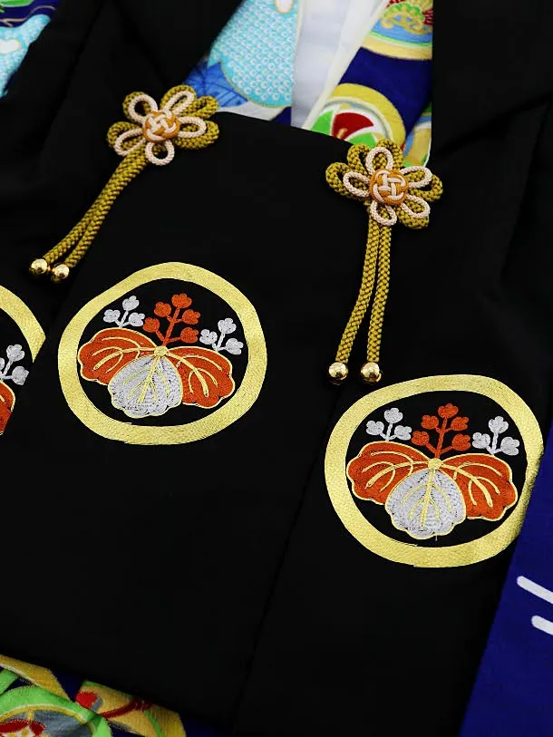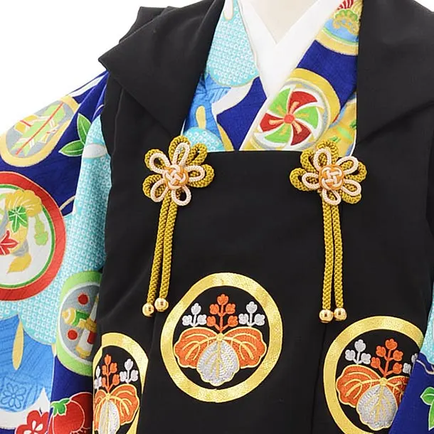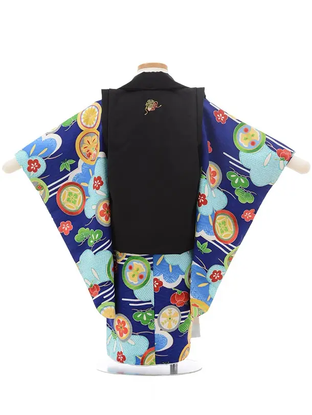 七五三レンタル(2歳男児被布)2428黒刺繍丸紋×ブルー丸紋
