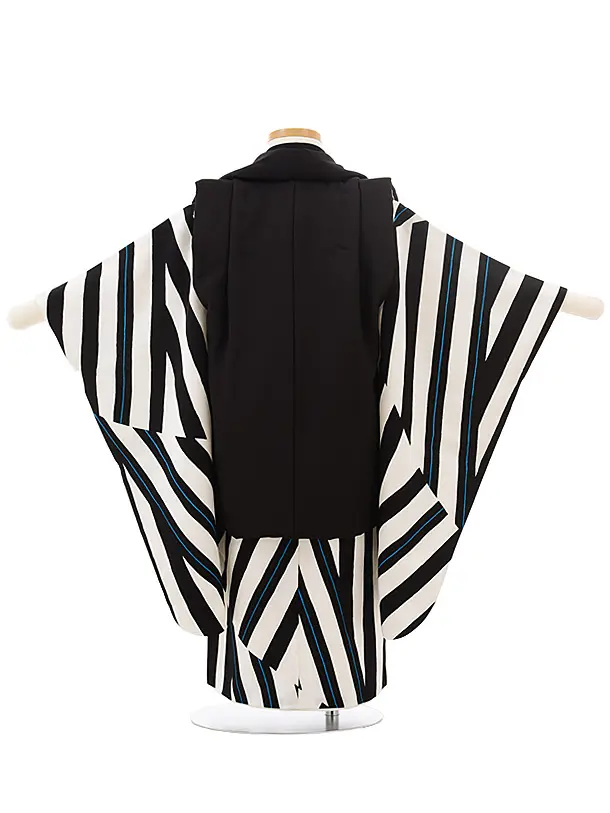 七五三レンタル(3歳男児被布)正絹2437黒×白黒変わりボーダー