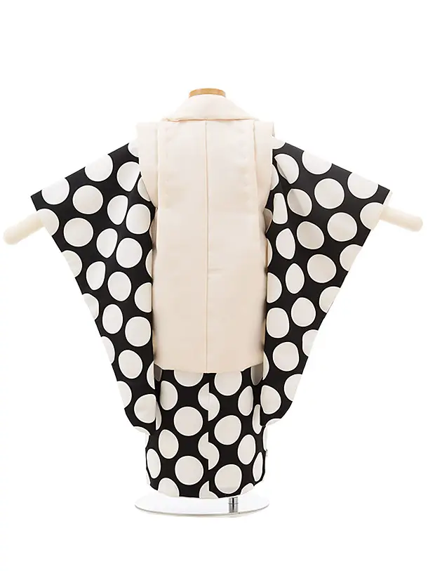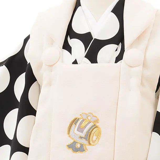 七五三レンタル(3歳男児被布)2447クリーム色×黒白ドット