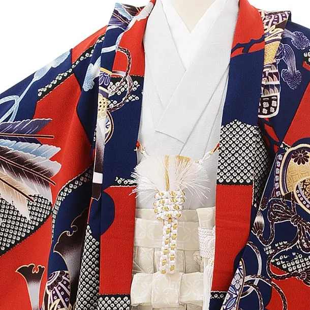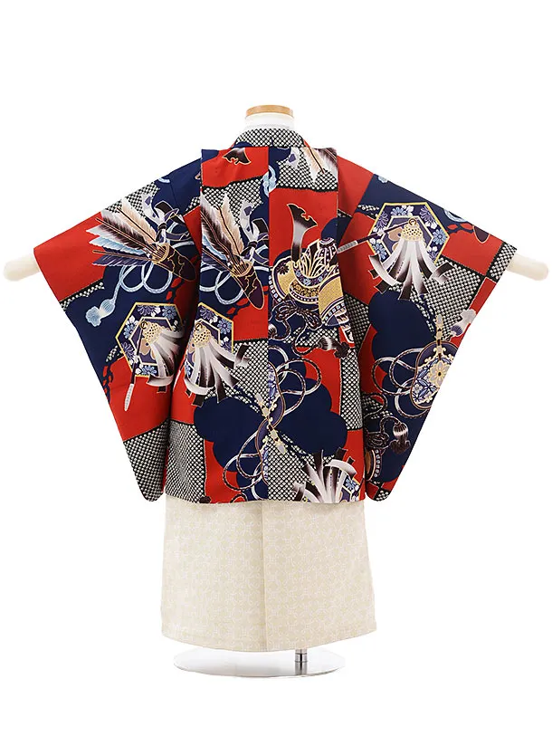 七五三レンタル(3歳男児袴)2458ぷちぷり赤紺市松かぶと