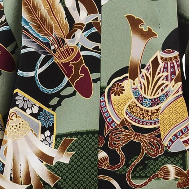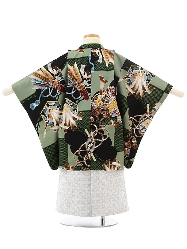 七五三レンタル(3歳男児袴)2459ぷちぷりグリーン黒市松かぶと