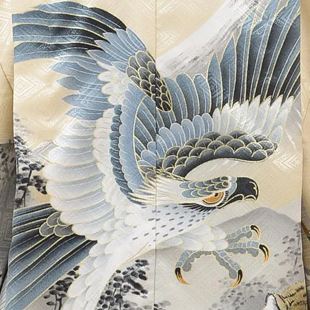七五三レンタル(3歳男児袴)2462ベージュぼかし虎に鷹×黒亀甲紋