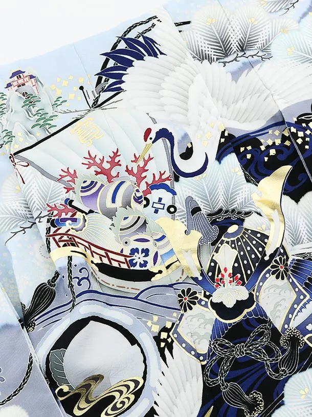 七五三レンタル(3歳男児袴)2468乙葉 絵羽かぶとに鶴水色