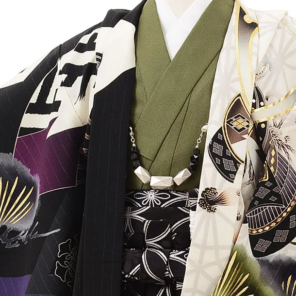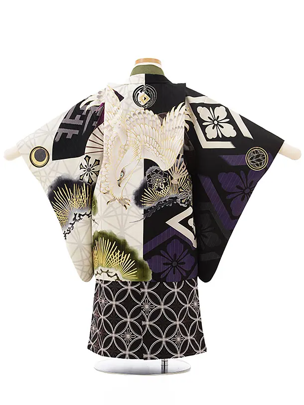 七五三レンタル(3歳男児袴)2469JAPANSTYLE 絵羽白黒鷹に松