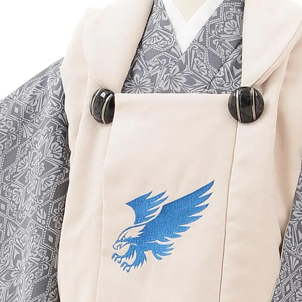 七五三レンタル(3歳男児被布)2475ぷちぷりベージュ鷹×グレー変わり柄