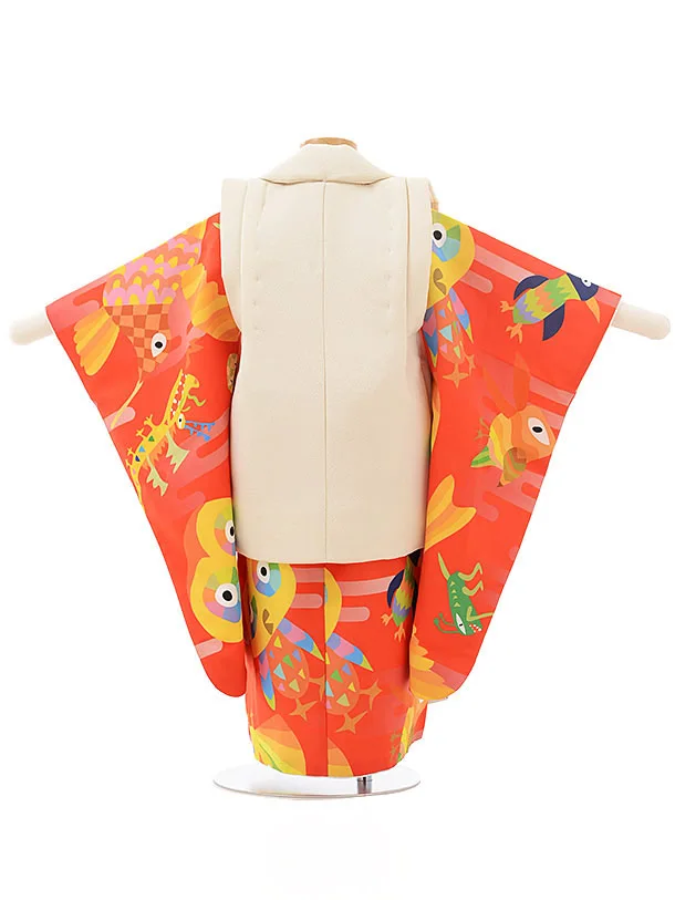 七五三レンタル(3歳男児被布)2487HAPPYEARTH空ベージュ×オレンジ