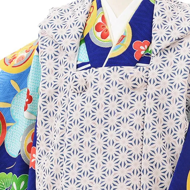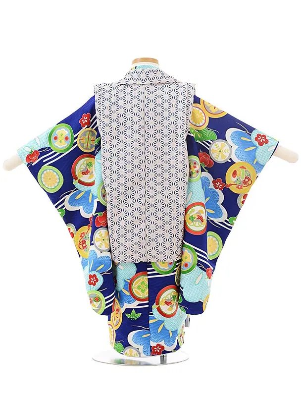 七五三レンタル(3歳男児被布)2495 式部浪漫 紺ベージュ麻の葉×紺丸紋