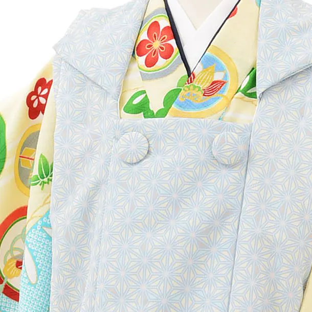七五三レンタル(3歳男児被布)2496 式部浪漫 水色麻の葉×クリーム丸紋