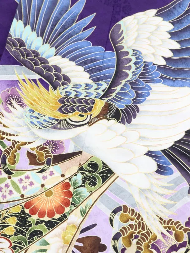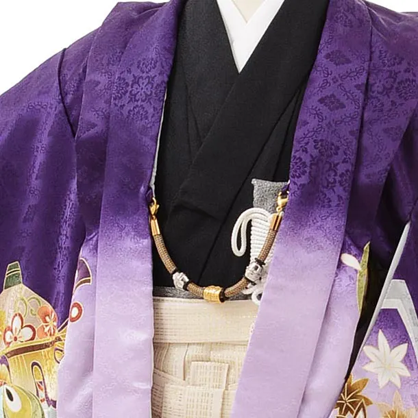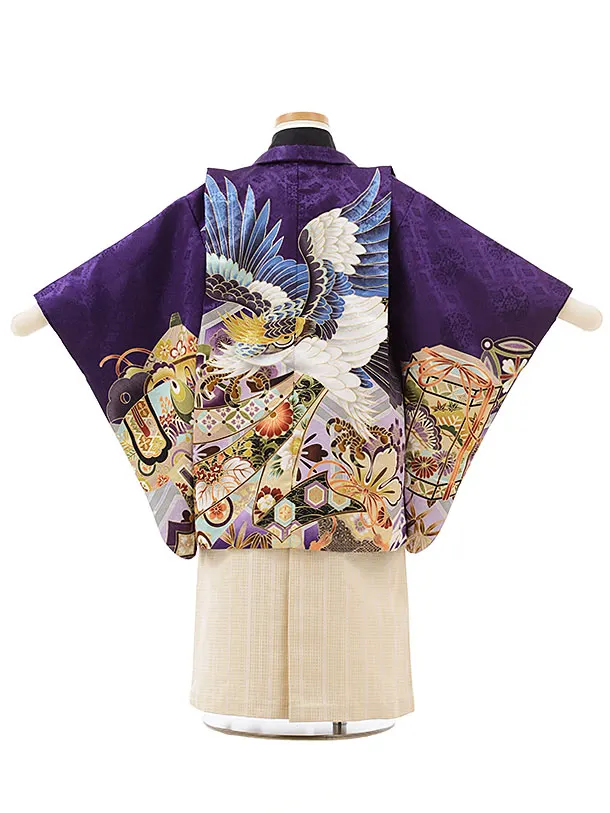 かんたん七五三(3歳男児袴)2506 紫地熨斗に鷹×ベージュ袴