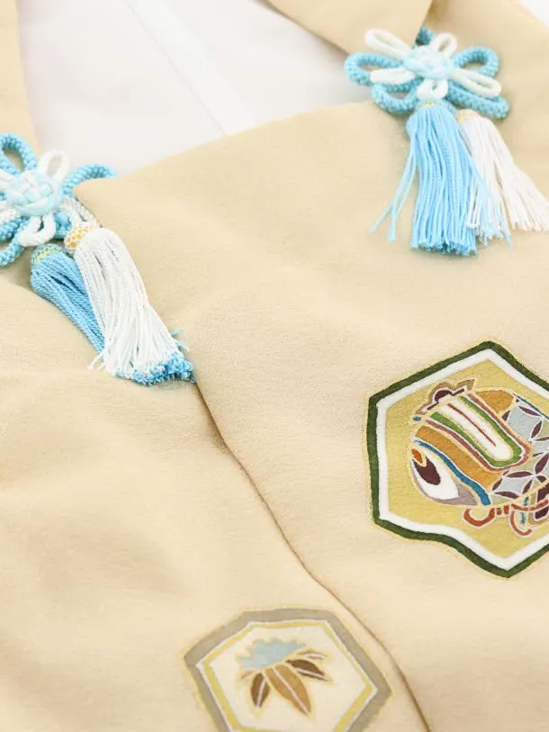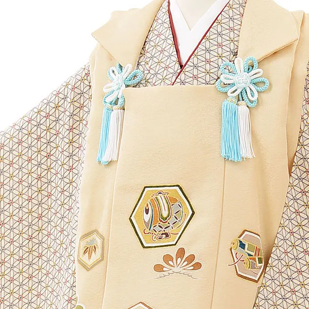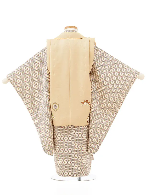 七五三レンタル(3歳男児被布)正絹2522ベージュ亀甲×グレージュ変わり柄