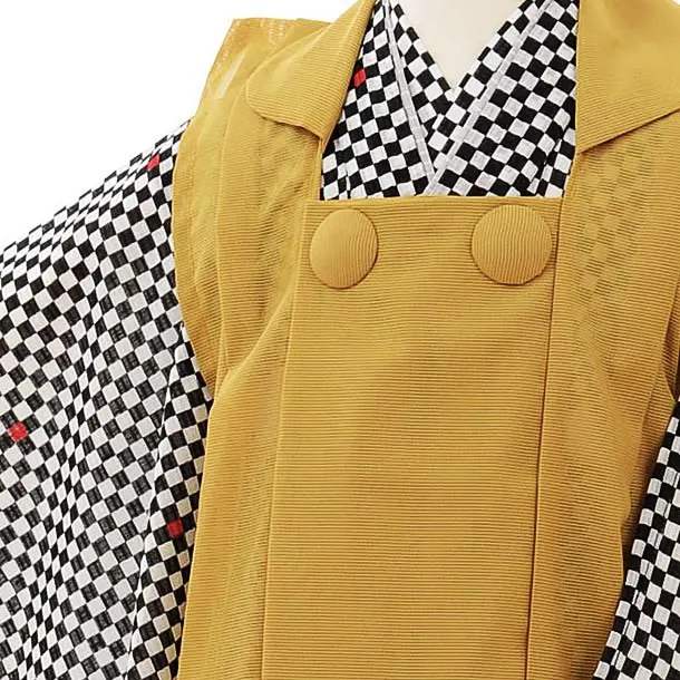 七五三レンタル(3歳男児被布)2529 夏物 からし色x白黒市松