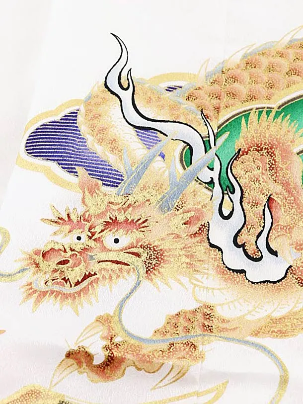 かんたん七五三レンタル(3歳男袴)2543白地雲に龍と鳳凰x紺袴