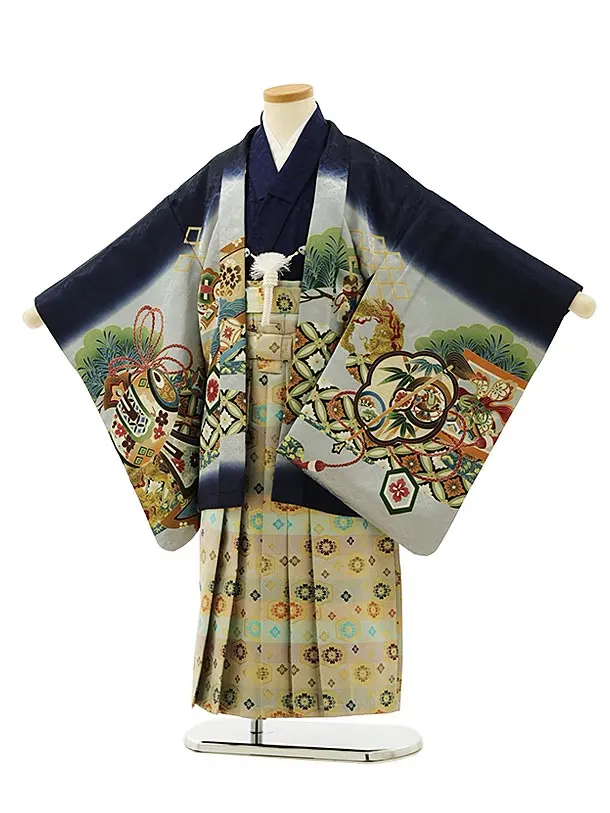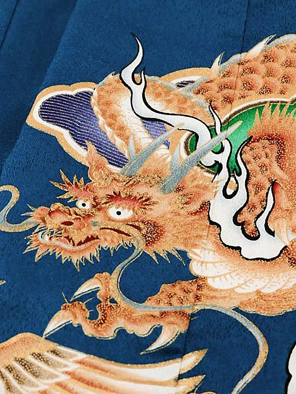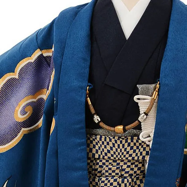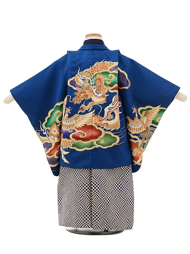 かんたん七五三レンタル(4歳男袴)2548ブルー地雲に龍と鳳凰x紺ゴールド袴