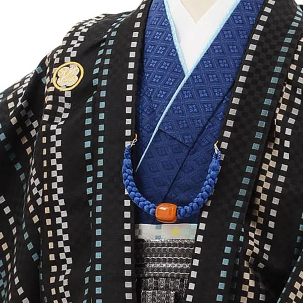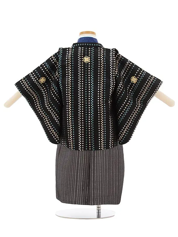 七五三レンタル(2歳男袴)2550黒地変わりストライプx黒シルバー袴