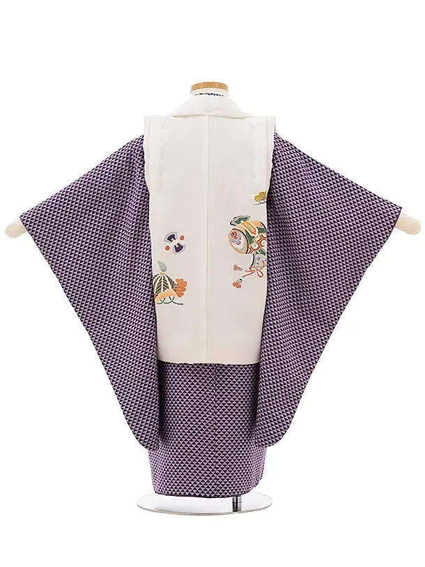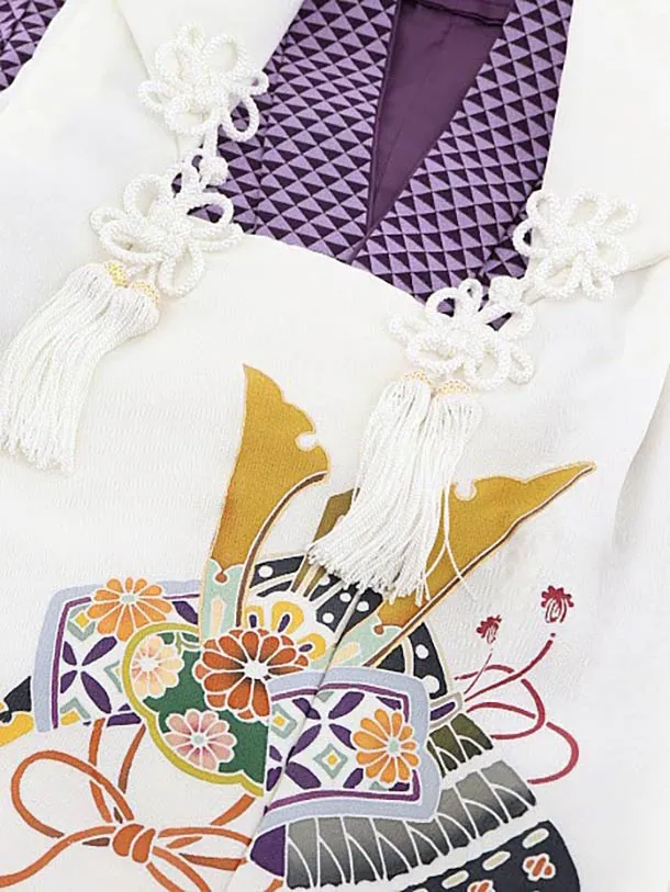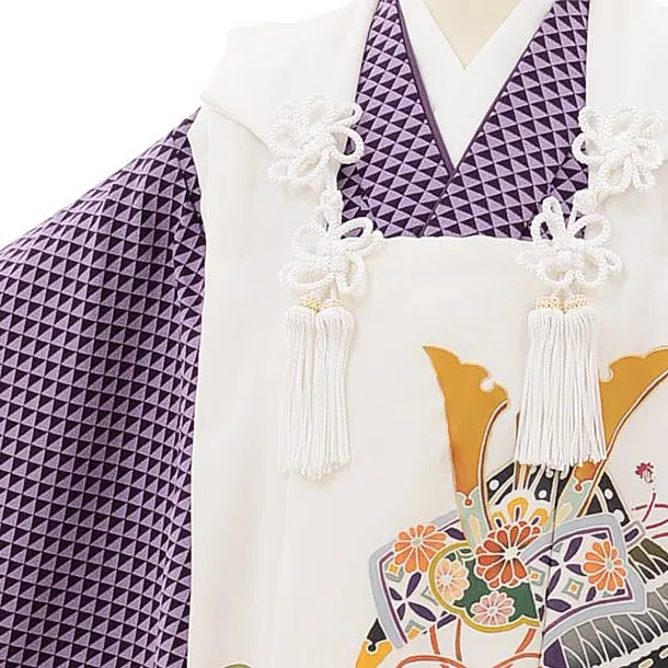 七五三レンタル(3歳男児被布)正絹 2560白地兜xパープルウロコ文様