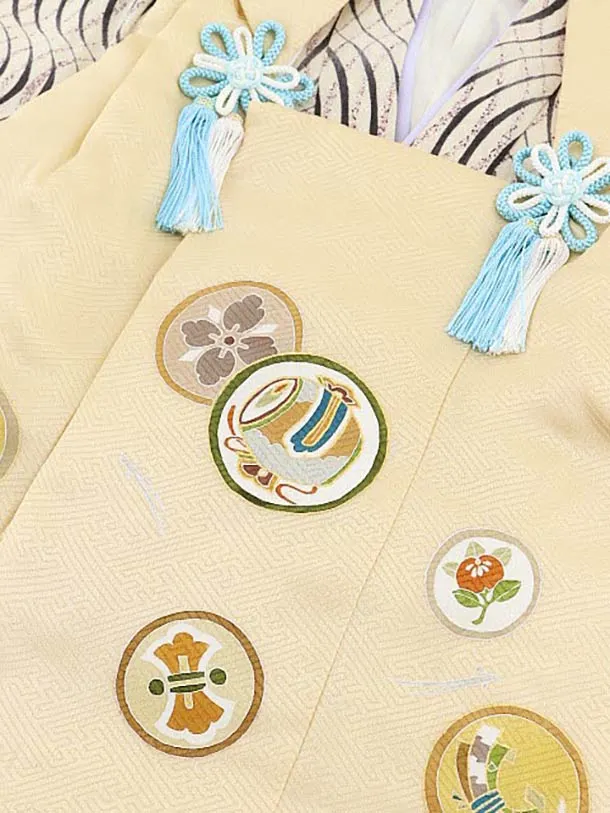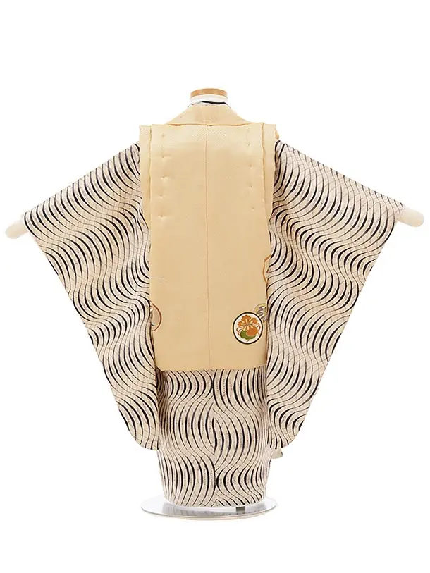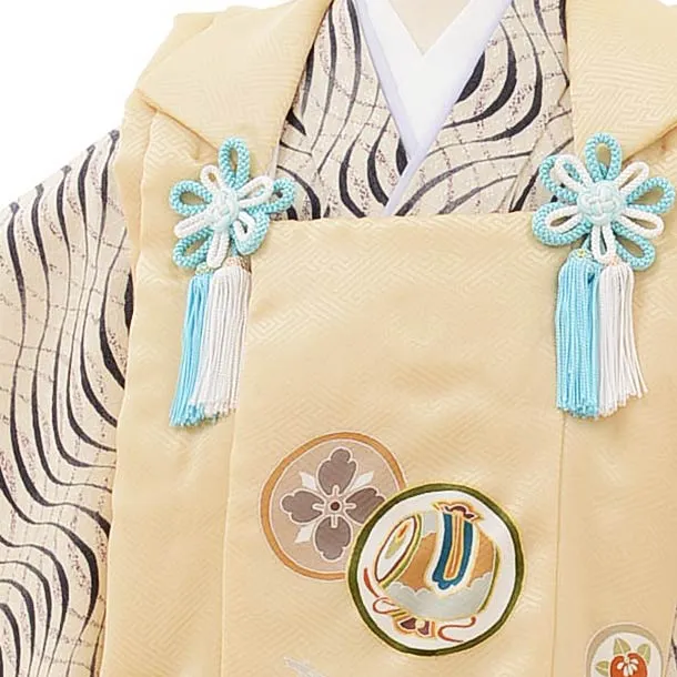 七五三(3歳男児被布)正絹2578ベージュ丸紋xアイボリー変わり柄