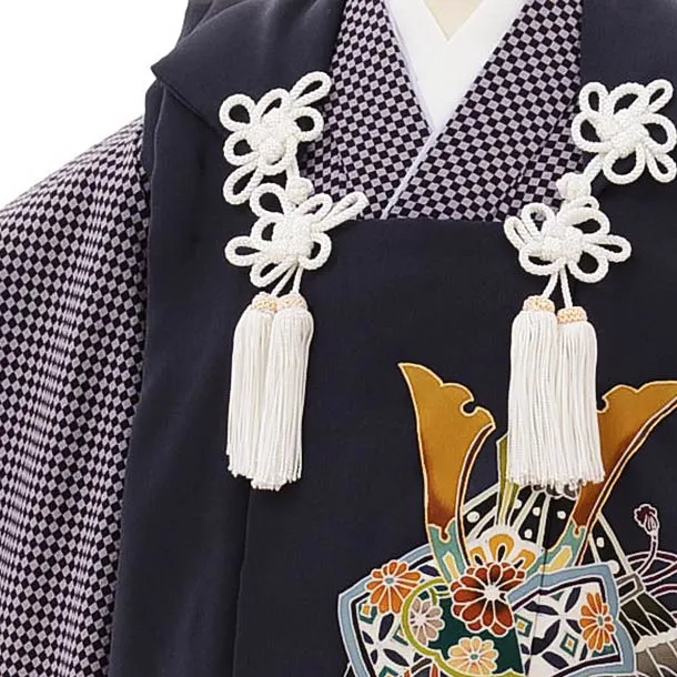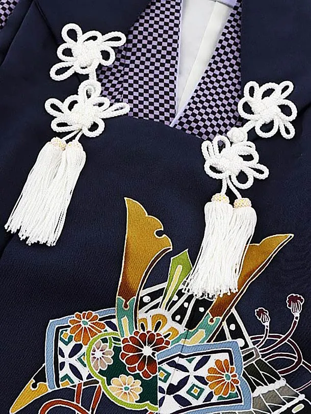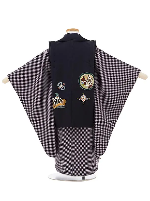 七五三(3歳男児被布)正絹2585パープル地兜xパープル石畳霰文 市松文様