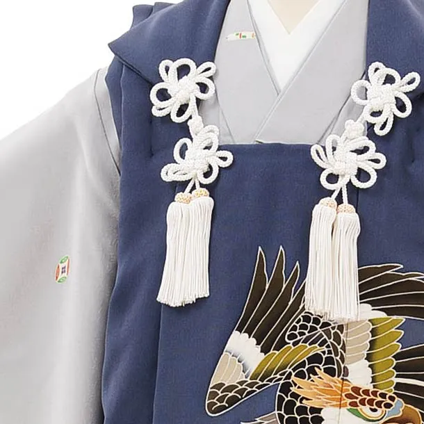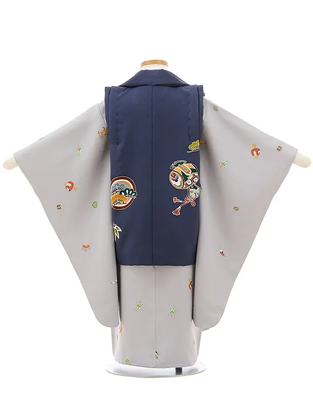 七五三レンタル(3歳男児被布)正絹2592ブルーグレー鷹x薄グレー 宝尽くし